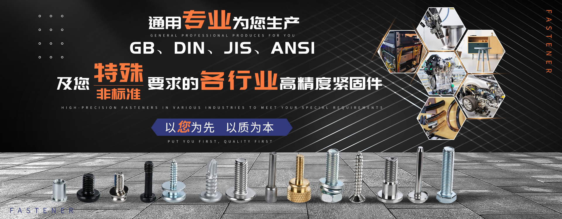 中山市通用螺絲制造有限公司成立于1987年,工廠坐落于廣東四小虎之一的中山市,北連廣州,毗鄰港澳??傉嫉孛娣e14000m 2,足有兩個足球場。1998年通過德國萊茵TUV ISO9002認證,于2002年通過TUV ISO9001:2000認證。2008年通過ISO 14000認證。我司主營自攻螺絲、組合螺絲機械螺絲、防松螺絲等標準和非標準件,既可按客戶的要求提交所需的產品,也可為客戶量身定做所需產品。我司擁有專業的產品檢測隊伍和投影分析儀、金相、硬度計(韋氏和洛氏)、扭矩力測試計等完善的檢測設備,為電子、電器、五金塑料、衛浴、家具、機械、汽配等行業提供符合歐盟質量、環保要求的產品2006年,我司自主開發的ERP管理系統,使我們的生產和服務效率得到了極大的提高。 經過三十多年地摸爬滾打,依靠眾多新老顧客的支持,通用螺絲逐漸成長為國內知名的緊固件供應商。了解更多 >>